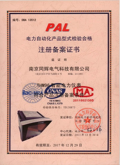 電力自動(dòng)化產(chǎn)品型式檢驗(yàn)合格注冊(cè)備案證書(shū)